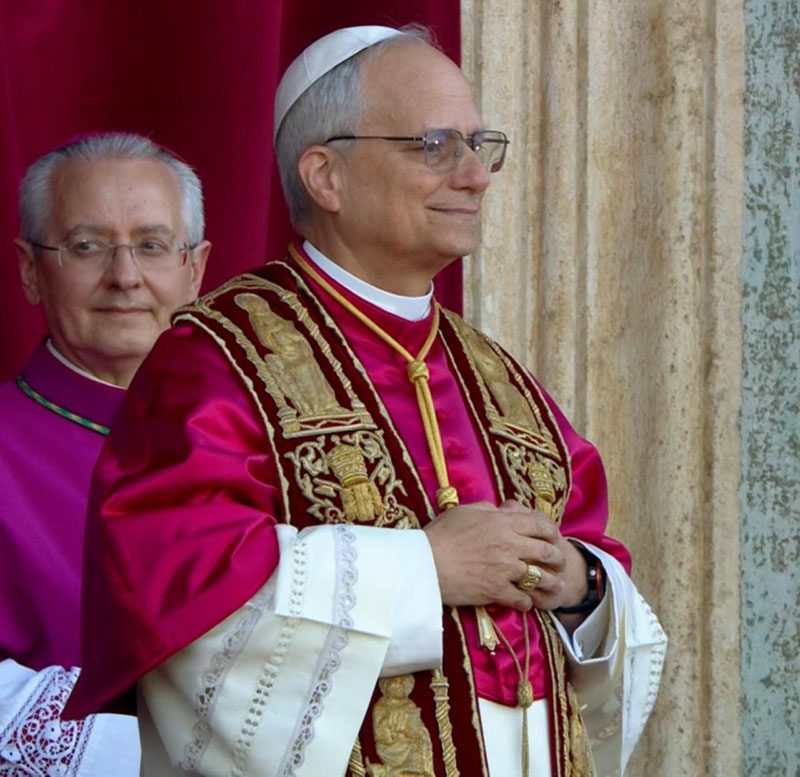 Apareció en la logia de la Basílica de San Pedro vistiendo la tradicional capa roja del papado, una capa que el papa Francisco había evitado en su elección en 2013.