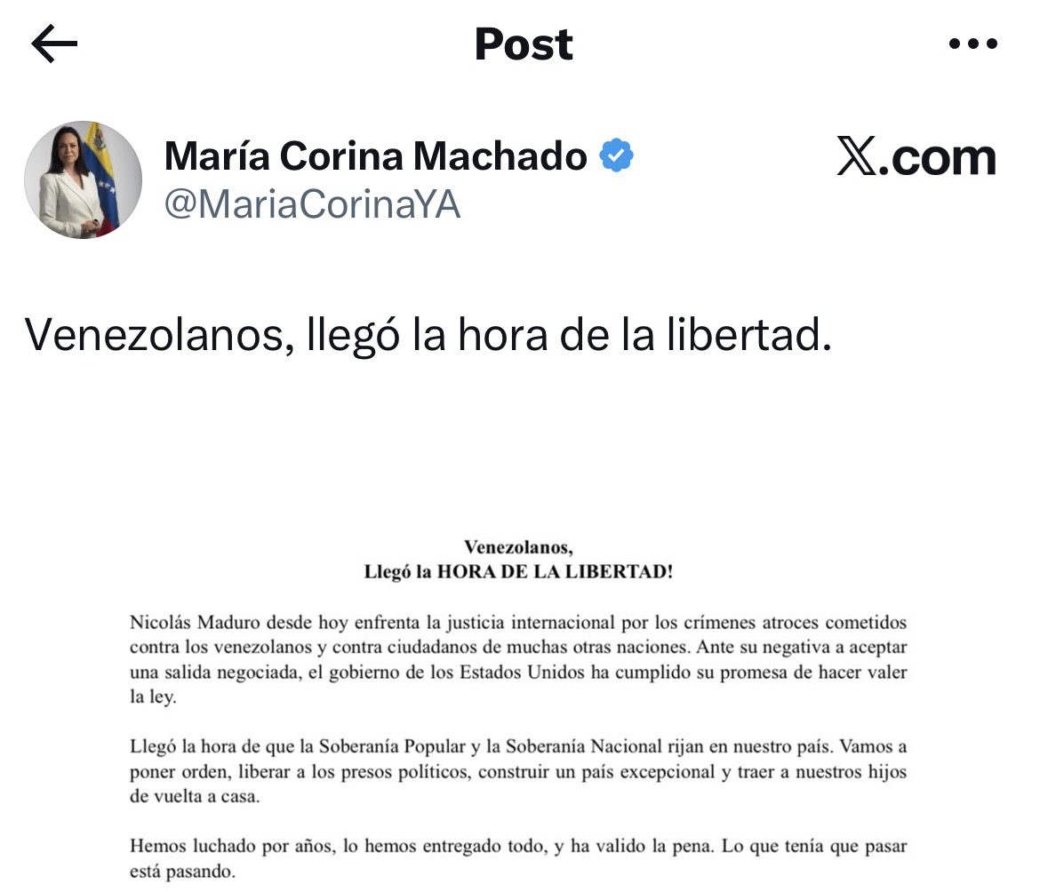 CONTINÚA LEYENDO ...“Estamos listos para tomar el poder”, dijo María Corina