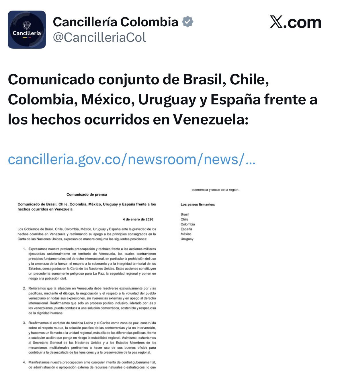 CONTINÚA LEYENDO ...Brasil, Chile, Colombia, México, Uruguay y España rechazan saqueo de recursos tras intervención en Venezuela