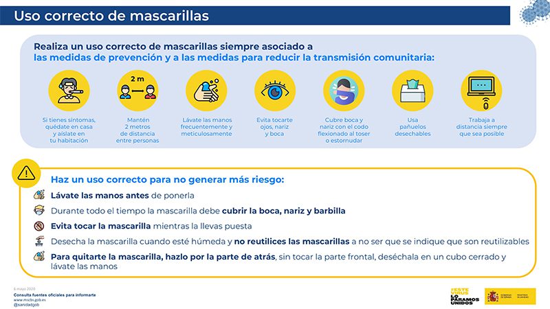 El uso obligatorio de cubrebocas fue indicado hoy por el gobierno español para prevenir el contagio de COVID-19, ahora que se inician las fases de retorno a la normalidad y gran parte del país está en la primera. La orden firmada por el ministro de Sanidad, Salvador Illa, dada a conocer en una conferencia de prensa, especifica que se indica su uso en la vía pública, espacios al aire libre, en el interior de edificios públicos o con varias personas, a menos que se pueda asegurar una distancia de dos…