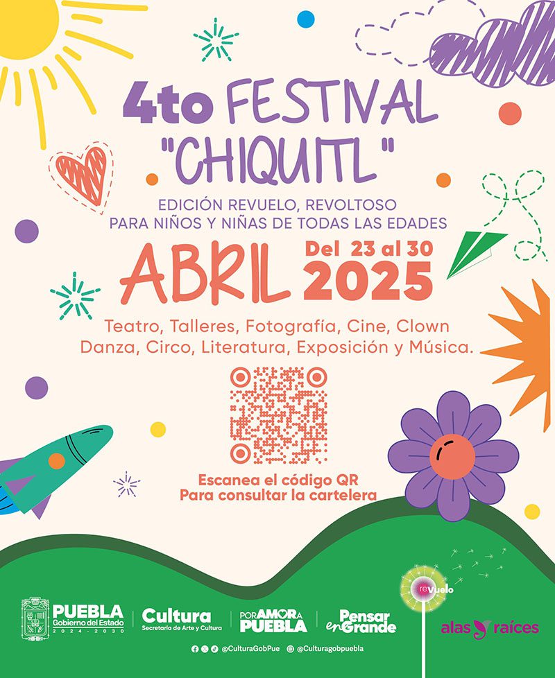 La Secretaría de Arte y Cultura ofrecerá alrededor de 30 actividades del 23 al 30 de abril con entrada gratuita. Para celebrar a las infancias en el marco del Día de la Niña y el Niño, el gobierno de Alejandro Armenta realizará la cuarta edición del “Festival Chiquitl”, en el que por medio de la Secretaría de Arte y Cultura ofrecerá más de 30 actividades artísticas del 23 al 30 de abril del 2025. Se llevará a cabo una exposición, así como puntos de lectura, talleres y presentaciones de teatro,…
