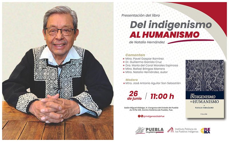 – Será el 26 de junio, a las 11:00 horas en el Congreso del Estado El gobierno presente de Sergio Salomón invita a la presentación del libro “Del indigenismo al humanismo” del poeta nahua, Natalio Hernández organizado por el Instituto Poblano de los Pueblos Indígenas (IPPI) en coordinación con el Congreso del Estado. El evento será desarrollado el miércoles 26 de junio, a las 11:00 horas, en el salón “Miguel Hidalgo” (Av 5 Pte. 128, Centro Histórico de Puebla), con el objetivo de compartir a la población en general la…