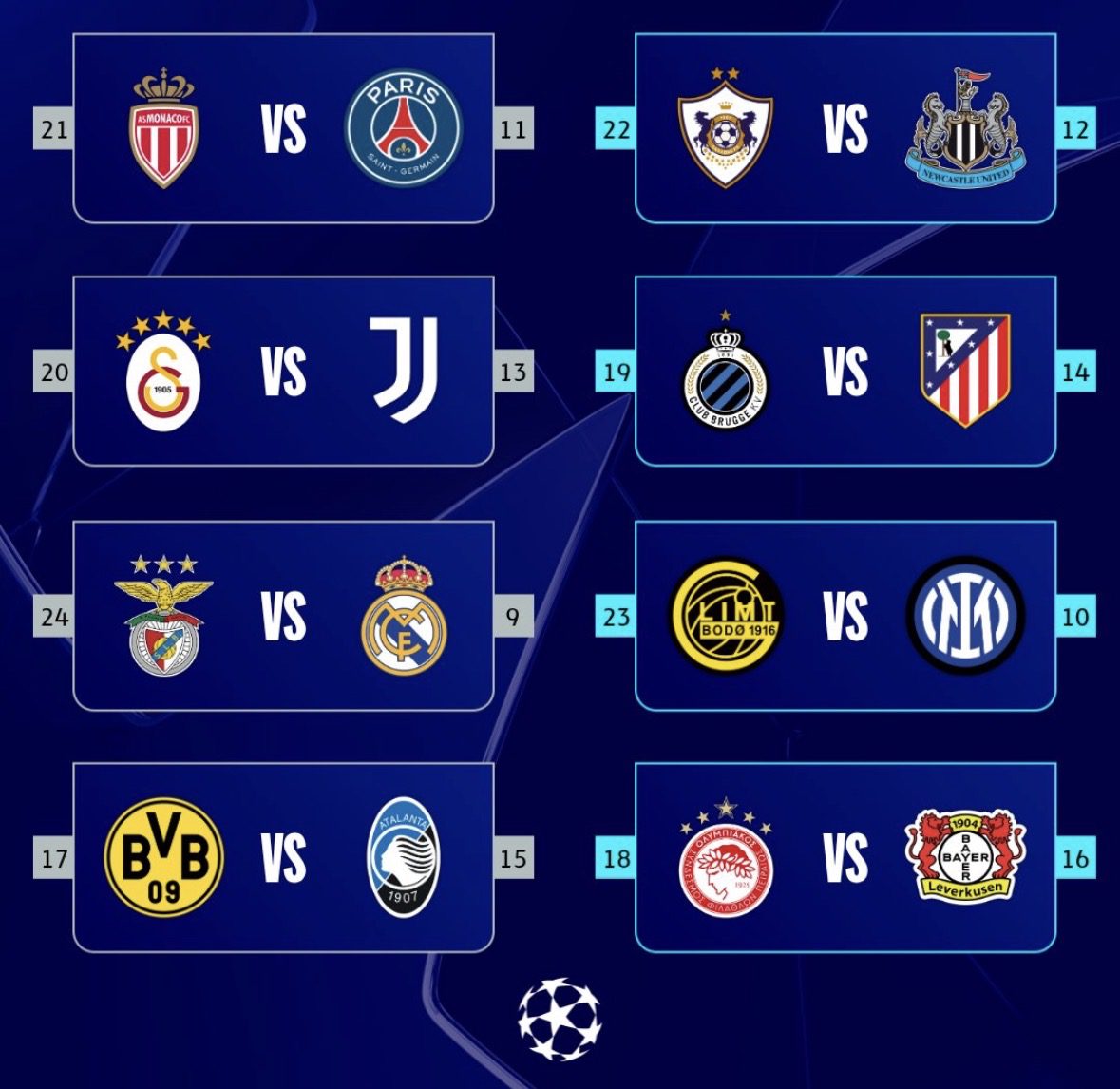 La UEFA realizó este 30 de enero el sorteo de los playoffs de la Champions League 2025-26, instancia que definirá a los últimos ocho equipos clasificados a los octavos de final del torneo más importante de clubes en Europa. Cruces de playoffs Los emparejamientos quedaron definidos: • Benfica vs Real Madrid • Bodø/Glimt vs Inter de Milán • Mónaco vs Paris Saint-Germain • Qarabağ vs Newcastle United • Galatasaray vs Juventus • Club Brugge vs Atlético de Madrid • Borussia Dortmund vs Atalanta • Olympiacos vs Bayer Leverkusen Las series…