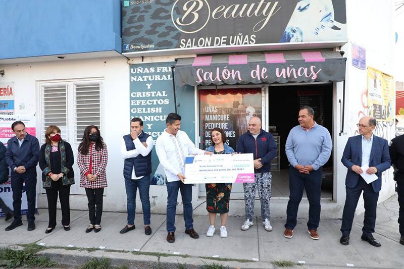 100 emprendedores y emprendedoras locales recibieron del Ayuntamiento de Puebla apoyo crediticio para sus negocios; para Brenda Avellaneda Tirado este financiamiento por 25 mil pesos significará el poder equipar su Salón de Uñas «Beauty».