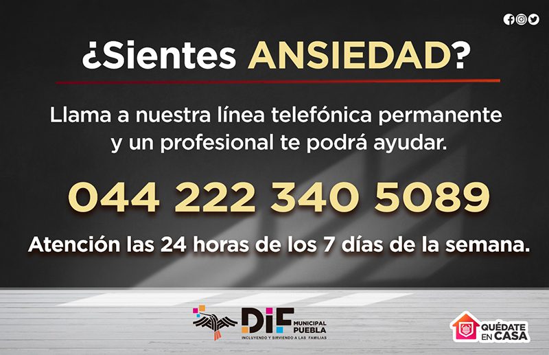 Conscientes de la alteración y conmoción emocional que está causando la contingencia sanitara por el virus COVID 19, así como el confinamiento voluntario derivado de la misma, el Gobierno de la Ciudad de Puebla, a través del Sistema Municipal DIF (SMDIF), brindará atención médica las 24 horas del día a las personas que sufren de ansiedad o periodos de crisis, detonados por esta eventualidad.