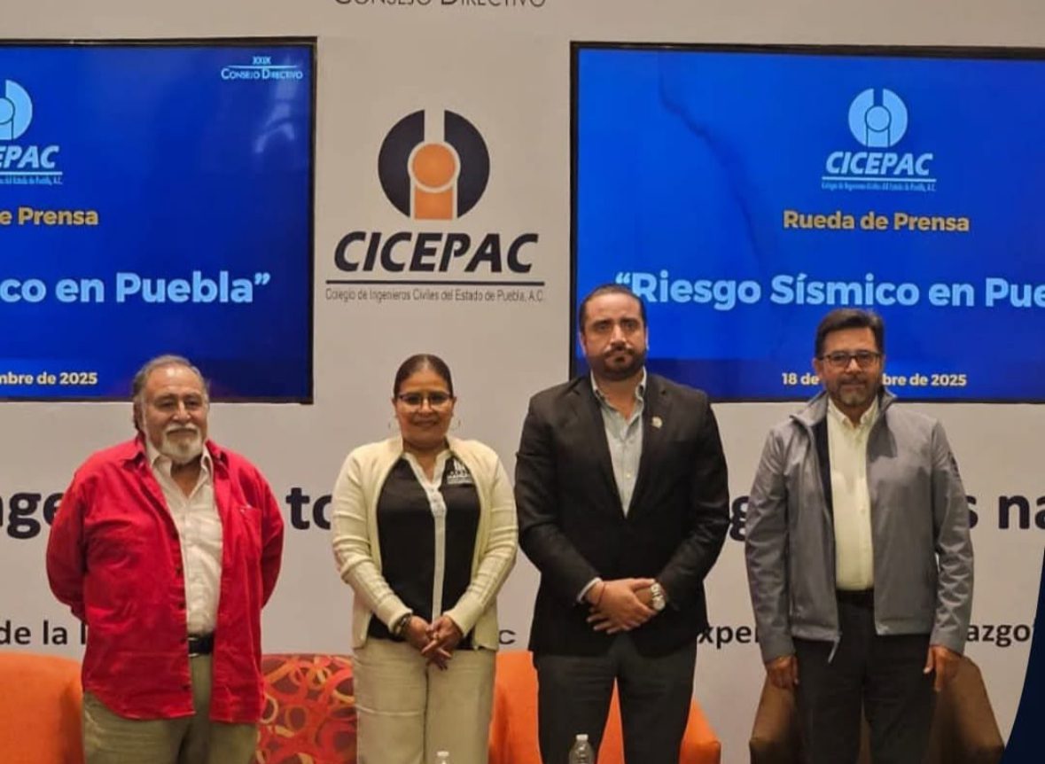 El XXIX Consejo Directivo del Colegio de Ingenieros Civiles (CICEPAC) del Estado, encabezado por el Dr. Alejandro Muñoz Muratalla, realizó la rueda de prensa para dar a conocer los peligros y riesgos sísmicos en Puebla, con motivo del 2° Simulacro Nacional 2025, que se desarrollará este 19 de septiembre a las 12:00 horas.