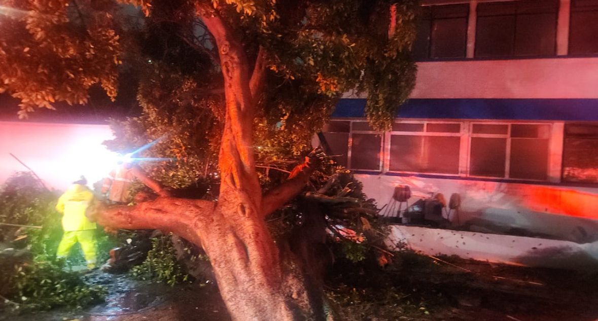 En otra reacción de manera inmediata, el personal de PC Municipal acudió a la 11 Oriente y 24 Sur, donde fue reportada la caída de un árbol y derribó la barda de la Primaria Belisario Domínguez.