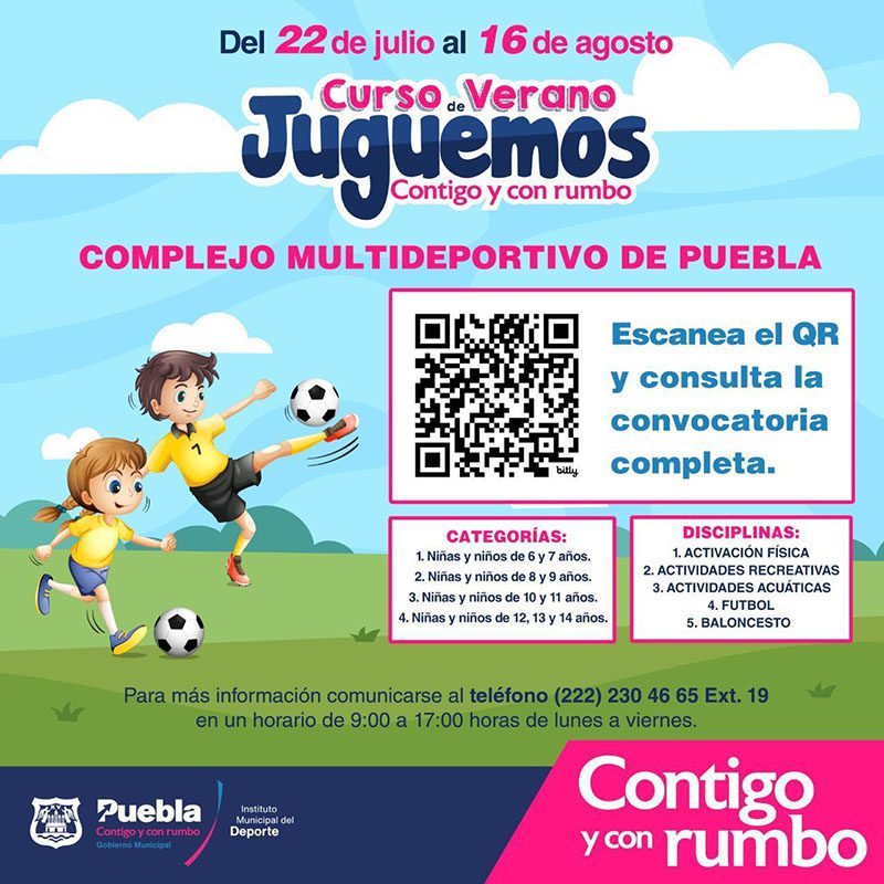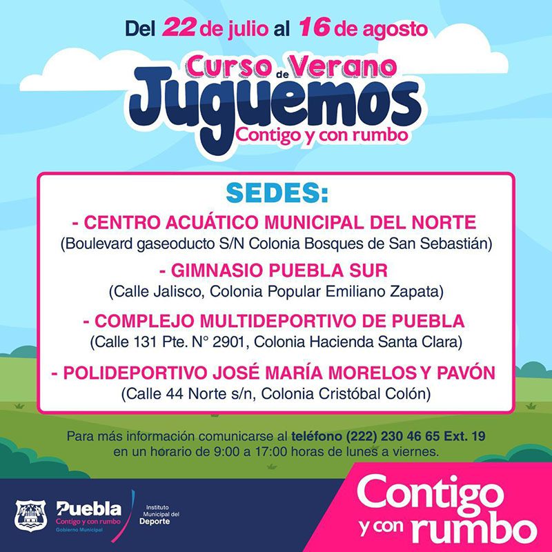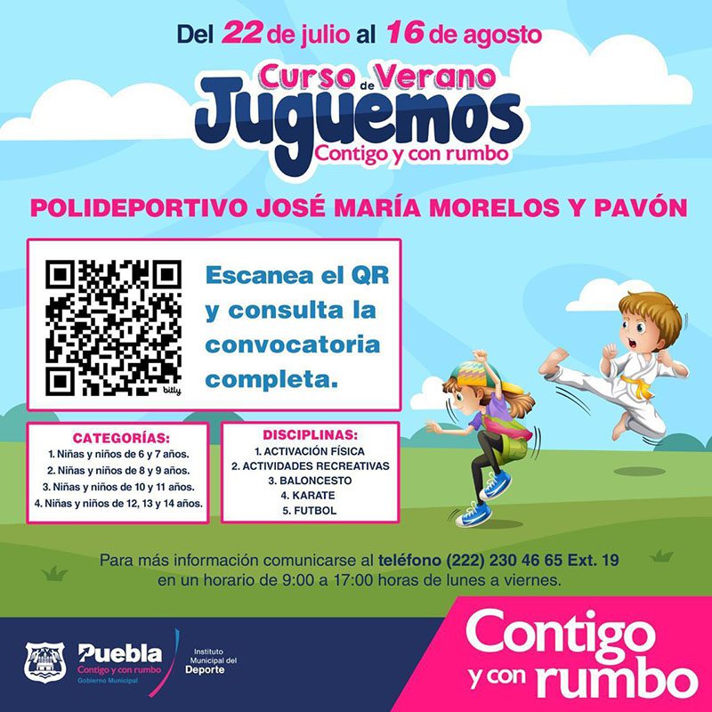 Las vacaciones de verano están por comenzar y para que la diversión se viva practicando fútbol, natación, karate o baloncesto, el Ayuntamiento de Puebla abrió inscripciones de los cursos “Juguemos Contigo y con Rumbo”.