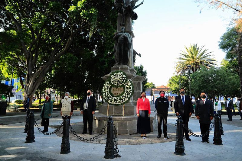 Autoridades municipales, encabezadas por la alcaldesa, Claudia Rivera Vivanco, presidieron la ceremonia cívica conmemorativa del 235 aniversario del natalicio de Nicolás Bravo.