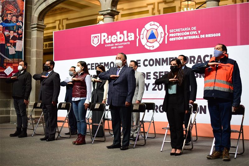 El Gobierno de la Ciudad, encabezado por Claudia Rivera Vivanco, realizó ceremonia conmemorativa de los sismos de 1985 y 2017, así como por el Día Nacional de Protección Civil.