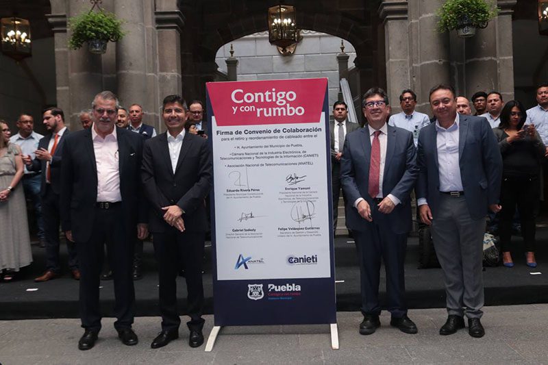 Como un acuerdo sin precedentes en favor de la imagen urbana de Puebla, el Gobierno Municipal firmó un convenio de colaboración con la Cámara Nacional de la Industria Electrónica de Telecomunicaciones y Tecnologías de la Información (CANIETI) y la Asociación Nacional de Telecomunicaciones (ANATEL) para lograr el retiro y ordenamiento del cableado aéreo de la capital.
