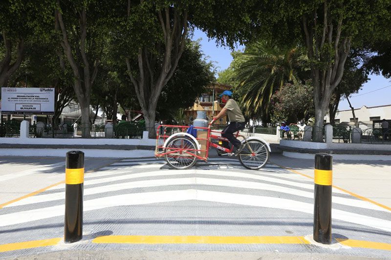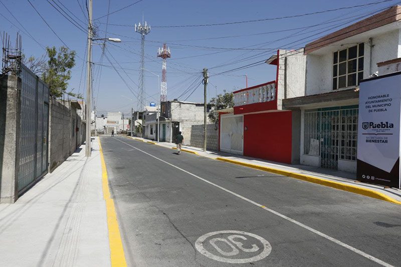 Con una inversión de cinco millones 703 mil 576 pesos, se realizó la pavimentación de tres mil 824.44 metros cuadrados con concreto hidráulico de las calles Cresencio Rodríguez, Juan C. Bonilla, Hidalgo y B. Juárez en San Jerónimo Caleras. Estas vialidades corresponden al primer cuadro de la Junta Auxiliar y contemplan la construcción de mil 446.26 metros cuadrados de banquetas, la renivelación de 16 pozos de visita, construcción de 26 rampas y colocación de cuatro reductores de velocidad.