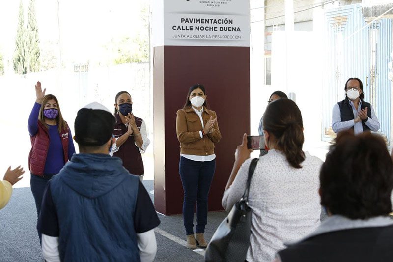 De igual forma, para la junta auxiliar La Resurrección se realizó la pavimentación y obras complementarias en las calles Noche Buena y Durango, con ocho millones 414 mil 494 pesos para la construcción de 813 metros lineales de pavimentación, la instalación de 31 nuevos puntos de luz, así como la construcción de banquetas y guarniciones, colocación de señalética vertical y horizontal.
