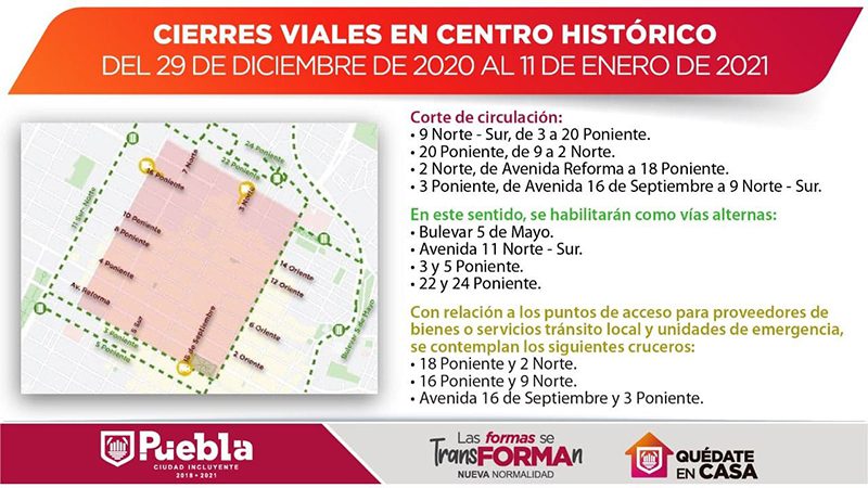 Tras la declaratoria estatal de Alerta de Riesgo Máximo por covid-19, el Gobierno de la Ciudad de Puebla anunció el despliegue de operativos de exhorto y vigilancia, así como de restricción de acceso vehicular en el Centro Histórico, para frenar la cadena de contagios.