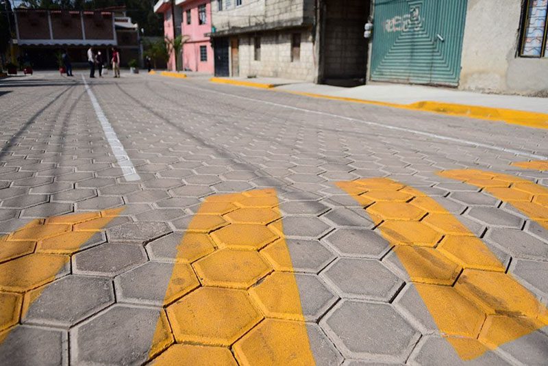 Se trató del adoquinamiento de la calle 5 de Mayo, en la colonia Independencia Caleras; calle 3 Oriente, en la Inspectoría Guadalupe Caleras, y calle San Agustín, de la Inspectoría Agrícola Ignacio Zaragoza. En la vía 5 de Mayo, asimismo, se realizaron trabajos de cimentación de banquetas.