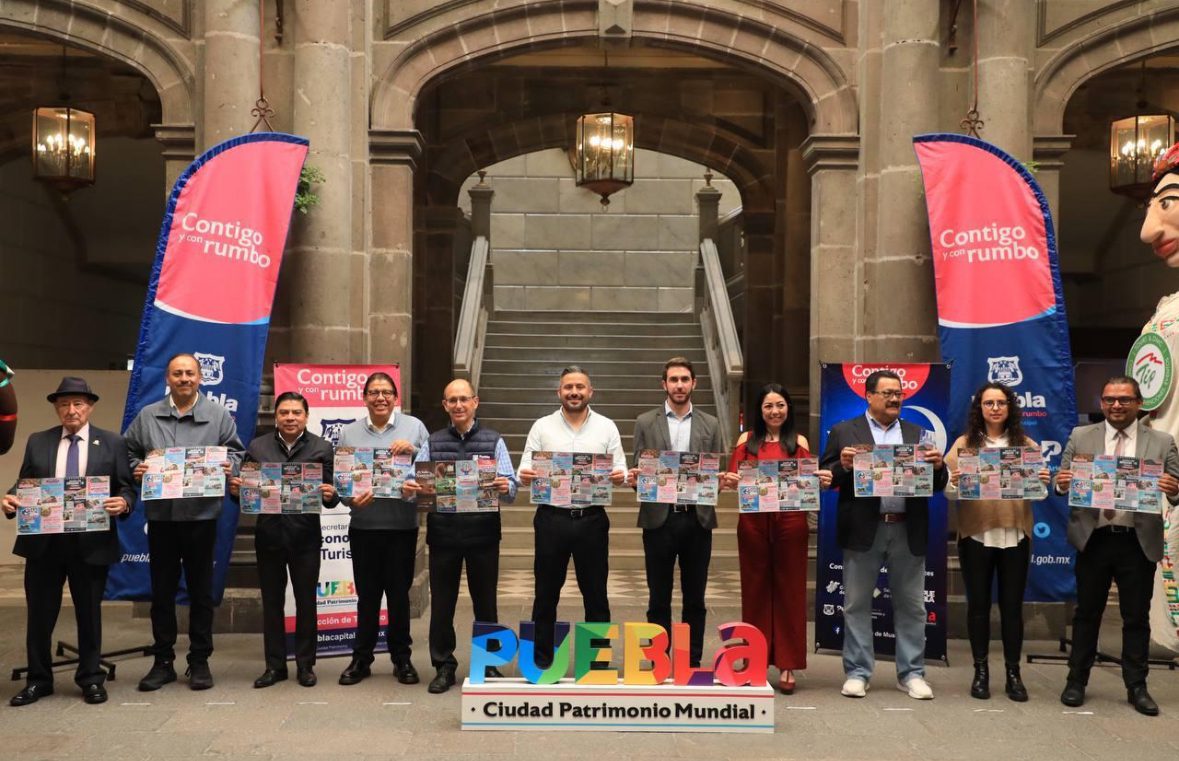 La presentación del Programa de Actividades Turísticas de la Temporada también estuvo encabezada por Fernanda Huerta, Regidora del Cabildo poblano; Alejandro Cañedo, Secretario de Economía y Turismo; Fabián Valdivia, Director del Instituto Municipal de Arte y Cultura y Juan José Sánchez, Vicepresidente de CANIRAC Puebla.