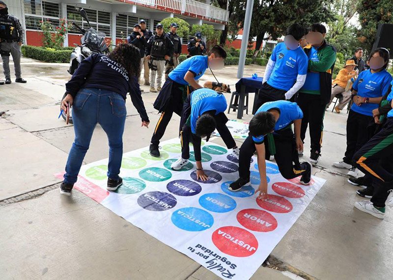 Está dinámica incluye juegos, desafíos, futbol americano, lotería, rompecabezas, jenga, twister, carreras, juego de aros, ruleta, tiro al blanco y muchas actividades más con las que la administración municipal busca que las y los jóvenes “tomen un papel activo en su seguridad”, apuntó Adán Domínguez momentos antes de arrancar con las dinámicas.