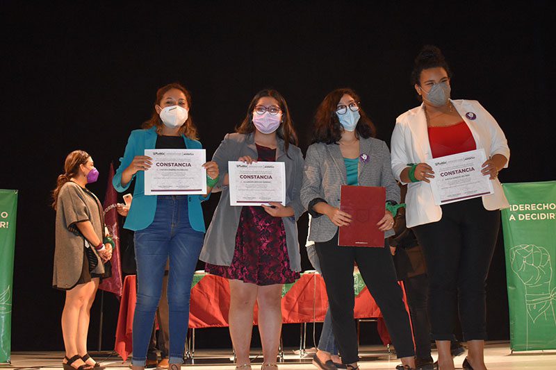 En el Teatro de la Ciudad, cuatro mujeres integrantes de colectivas feministas debatieron y compartieron sus puntos de vista sobres diversos temas como derechos sexuales y reproductivos, pin parental, aborto libre y seguro, salud materna y violencia de género.