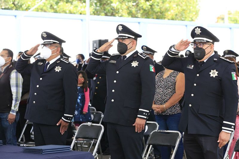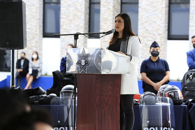 La alcaldesa, durante su mensaje, agradeció el compromiso, entrega y vocación de servicio de todas y todos los elementos, indispensables en la reconstrucción del tejido social.