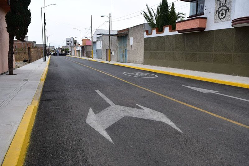 Asimismo, con un millón 992 mil 532 pesos del Fondo de Infraestructura Social Municipal (FISM), la misma dependencia realizó la pavimentación de 150 metros lineales, la construcción de guarniciones, banquetas, instalación de señalética horizontal y vertical, así como seis nuevos puntos de luz en la calle Heráclito, en la colonia Satélite Magisterial.