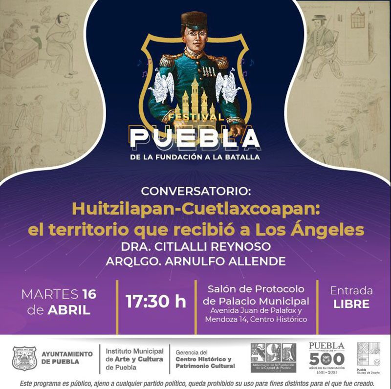 El Ayuntamiento de Puebla informa sobre la agenda artística y cultural que se estará llevando a cabo con motivo del 493 aniversario de la Fundación de la Ciudad y como parte del “Festival Puebla”.