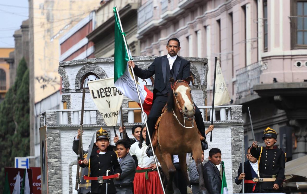Después de las 10 de la mañana se dio inicio al desfile donde el gobernador de Puebla Sergio Salomón Céspedes Peregrina, el presidente municipal de Puebla, José Chedraui Budib, acompañados de la escritora Elena Poniatowska, quien fue la invitada especial de este evento, además de que fue galardonada con la medalla «Carmen Serdán».