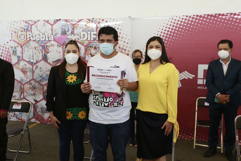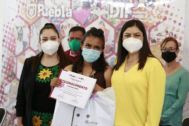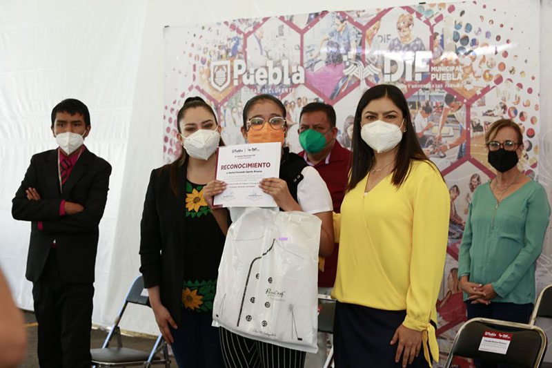 La Presidenta Municipal, Claudia Rivera Vivanco, asistió a la entrega de reconocimientos del periodo de capacitación 2020 – 2021 de los Talleres de gastronomía, auxiliar general y atención al cliente SMDIF-OXXO y computación.