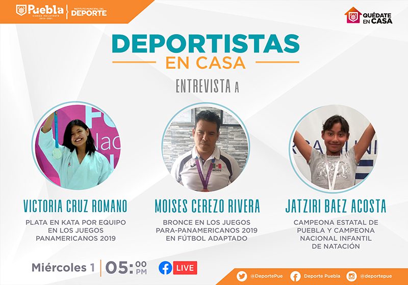 El próximo miércoles 1 de julio, a partir de las 17:00 horas, en la transmisión por Facebook se contará con la presencia de Victoria Cruz Romano, Moisés Cerezo y Jatziri Báez Acosta. Por medio de esta dinámica, el Gobierno de la Ciudad, a través del Instituto Municipal del Deporte (IMDP), mantiene actividades deportivas en línea.