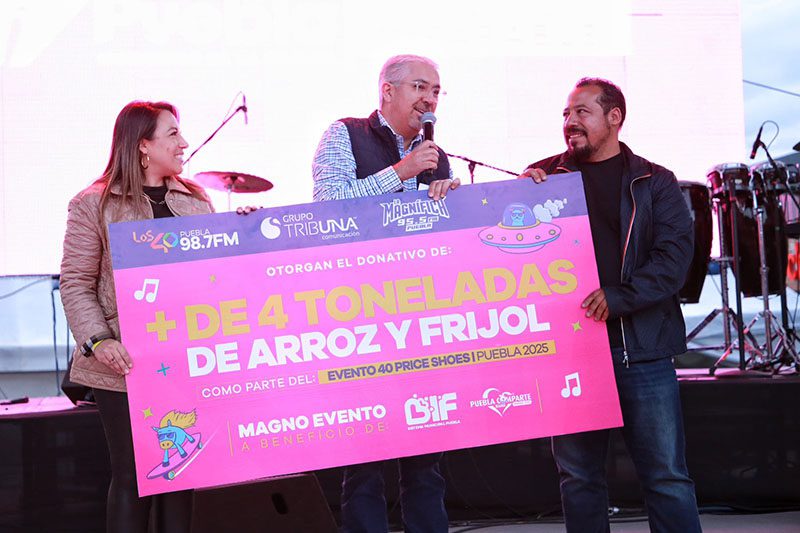 Durante el concierto “Los 40”, organizado por Grupo Tribuna Comunicación, se llevó a cabo la entrega de un cheque simbólico al director general del DIF Puebla Capital, Jesús Alejandro Cortés Carrasco, en representación de la presidenta del Patronato MariElise Budib.