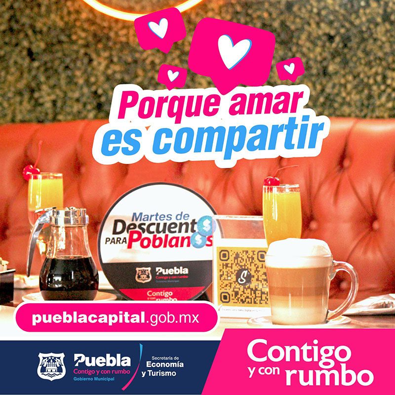 Para celebrar el 14 de febrero, día del amor y la amistad, el Ayuntamiento de Puebla presidido por Eduardo Rivera Pérez, invita a consultar la lista de negocios afiliados y aprovechar los descuentos que estos ofrecen en https://pueblacapital.gob.mx/martes-de-descuento-para-poblanos