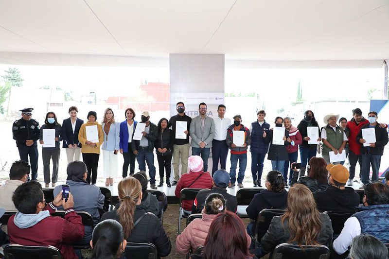 Se trató de la segunda entrega de documentos de este tipo en lo que va de la Administración de Eduardo Rivera Pérez, presidente municipal, y con ello suman 780 familias que tienen certeza jurídica sobre sus predios, ya que desde diciembre del año pasado se ha impulsado este programa de regularización.