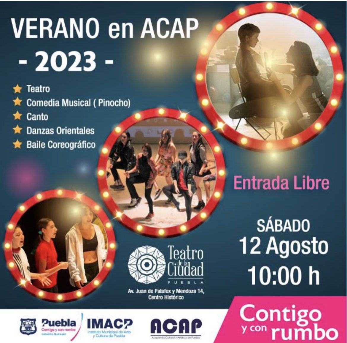 Inicia este sábado 12 de agosto a las 10:15 horas en el Teatro de la Ciudad con la Gala Artística Verano 2023, a cargo de la Academia Cultural y Artística de Puebla (ACAP) con teatro y música para todas las edades.