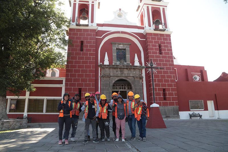 Los trabajos consistieron en la restitución de 20 placas de talavera con los nombres antiguos de las calles y la atención de 157 fachadas de inmuebles históricos de este barrio, abarcando 16 mil metros cuadrados en los cuales se retiró vegetación parásita y se realizó la restitución de aplanados, emboquillado en molduras, pintura en herrerías y muros.