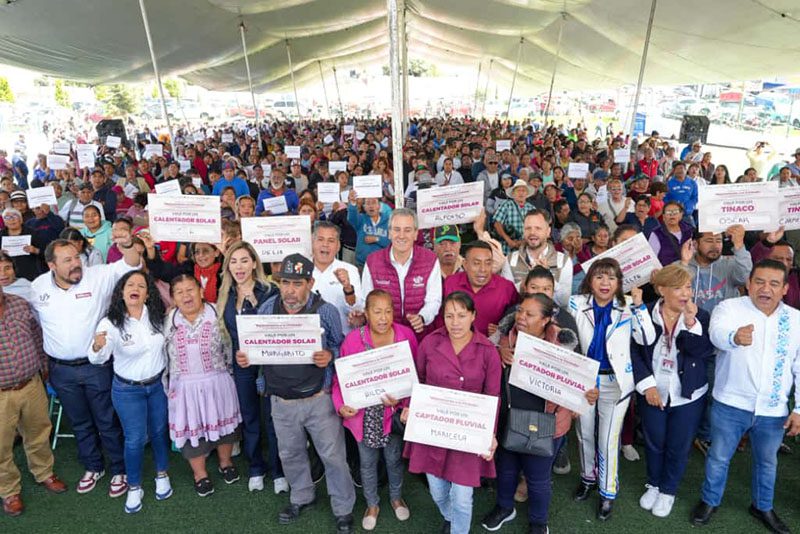 En la Junta Auxiliar entregó cinco calentadores solares, cinco captadores de agua pluvial, cinco paneles solares y cinco tinacos, a través de los Comités de Participación Social para reducir el gasto en servicios básicos, fomentando el uso de energías limpias para impulsar el desarrollo económico de las familias poblanas.