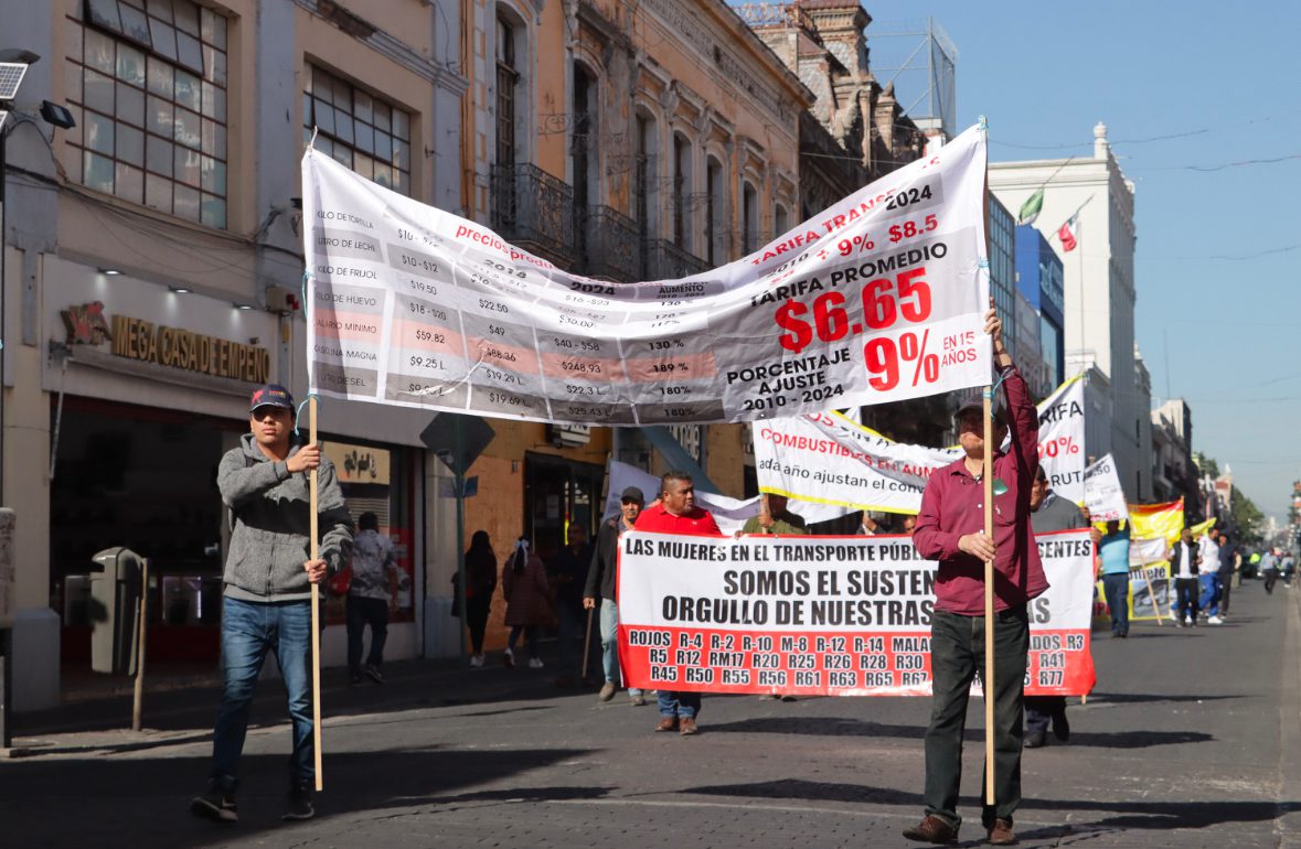 Con lonas y cárteles una comisión de transportistas iniciaron una marcha desde el reloj de «El Gallito», sostuvieron que es necesario el incremento al pasaje debido a que su situación es insostenible por el aumento a los insumos así como a la gasolina.