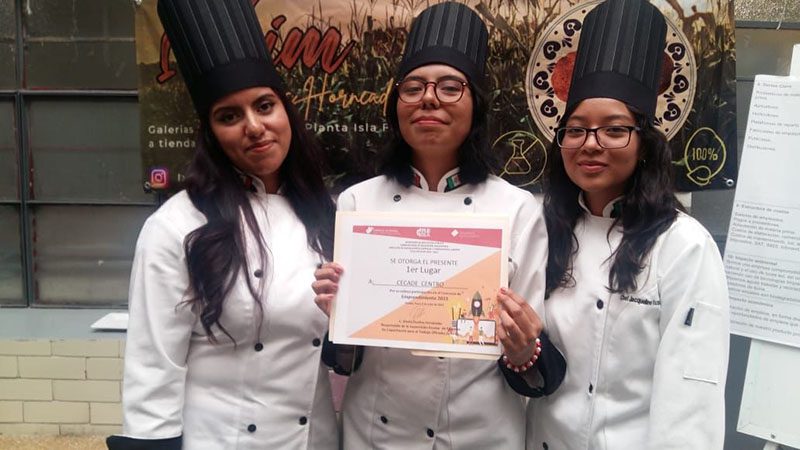 Recientemente 24 alumnos de la Carrera de Capacitación para el Trabajo en Gastronomía, presentaron sus exámenes finales, que incluían implementar un modelo de negocio funcional, de las presentaciones, se eligió al equipo representante en el concurso que se llevó a cabo en la Escuela de Artes y Oficios Sor Juana Inés de la Cruz y estuvo conformado por 10 instituciones, donde cada una expuso un proyecto innovador, que además tuviera impacto social, económico y ecológico.