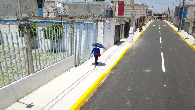 En la colonia Constitución Mexicana, perteneciente a la misma junta auxiliar, se trabajó en señalamiento horizontal y vertical, guarniciones, banquetas y alumbrado público de la calle Artículo 9°, donde 290 habitantes ahora cuentan con condiciones adecuadas que privilegian al peatón, a la vez que fomentan una interacción segura con otras formas de movilidad.