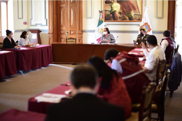 Integrantes del Comité de Prevención y Continuidad de Operaciones del Ayuntamiento de Puebla revisaron los alcances y vigencia de la estrategia 12 programas para mitigar los efectos de la emergencia sanitaria causada por Covid-19.