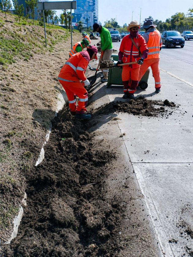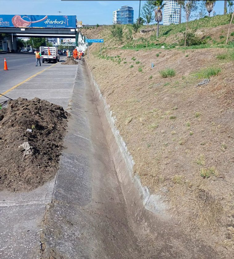Durante la intervención, cuadrillas del OOSL realizaron el retiro de hierba, tierra acumulada y residuos sólidos que obstruían el paso del agua en las cunetas, lo que permite restablecer su capacidad de conducción y mejorar el desalojo de escurrimientos pluviales.