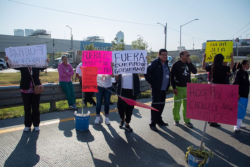 Medio centenar de trabajadores sindicalizados del Hospital General de Cholula realizaron una manifestación para solicitar la destitución de la directora general, Guadalupe Elizabeth Laugh, a quien acusan de ejercer prepotencia, nepotismo y hostigamiento laboral. Los manifestantes pidieron a las autoridades revisar su gestión y tomar medidas al respecto.