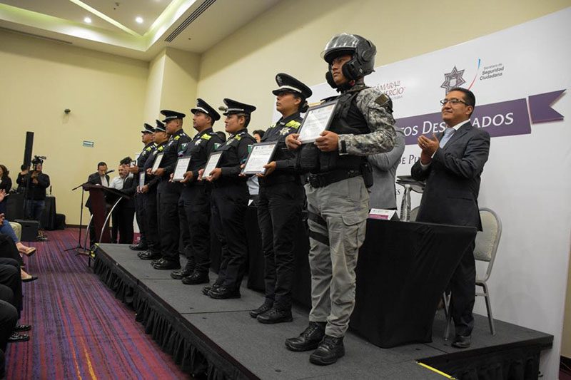 Por ser un ejemplo de compromiso y entrega en favor de la seguridad de las familias poblanas, 35 elementos de la Policía Municipal de la capital fueron reconocidos por la Cámara de Comercio, Servicios y Turismo de Puebla (Canaco) y Grupo OXXO.