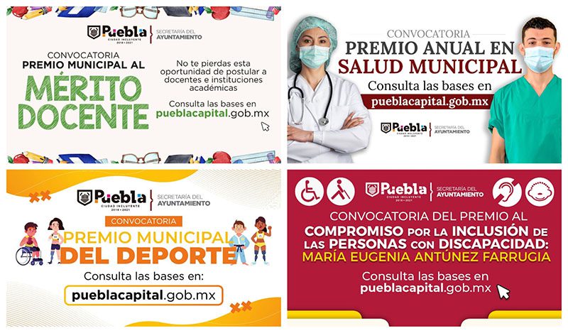 El Ayuntamiento de Puebla, a través de la Secretaría del Ayuntamiento, publicó cuatro convocatorias a Premios Municipales con el fin de reconocer a las y los profesionistas e instituciones de la ciudad.