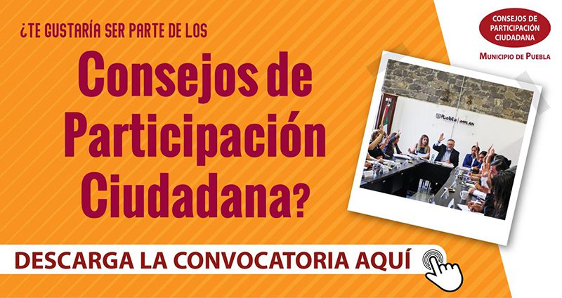 Brindando las condiciones a la ciudadanía para aportar a la política pública del Municipio de Puebla, los 22 Consejos de Participación Ciudadana cuentan con más de 20 años de experiencia y han tenido representación de universidades, sociedad civil organizada y ciudadanía independiente, consolidando una Ciudad Incluyente.