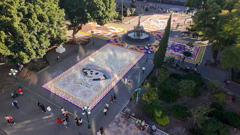 Con el objetivo de promover el turismo cultural y fortalecer las expresiones artísticas que dan vida al XVIII Festival “La Muerte es un Sueño”, el presidente municipal, Pepe Chedraui y la presidenta del SMDIF, MariElise Budib inauguraron el Tapete Monumental y la Ofrenda del Palacio Municipal que se encuentra dedicada el Beato Juan de Palafox y Mendoza.