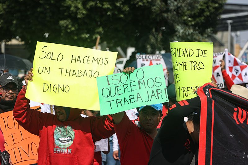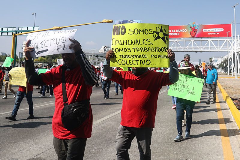 Integrantes de la Unión Popular de Vendedores Ambulantes (UPVA) 28 de Octubre realizaron una manifestación para solicitar a las autoridades estatales que permitan la operación de taxis irregulares en la Vía Atlixcáyotl.