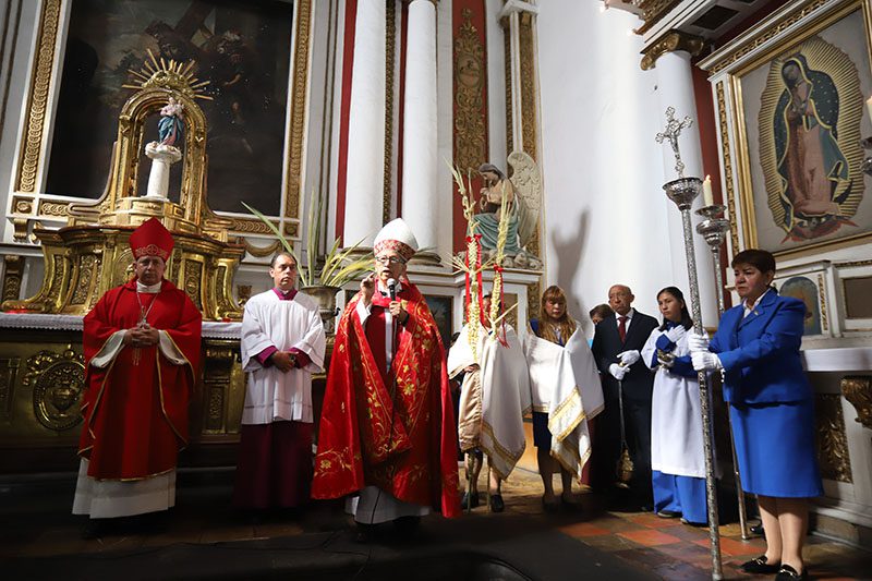 Previo a la homilía dominical, los obispos auxiliares de Puebla Tomas López Durán y Francisco Javier Martínez Castillo participaron en la procesión de Palmas, ya durante la celebración eucarística, se pidió por el descanso de la activista protectora de animales Elena Larrea, tras su fallecimiento el pasado martes 19 de marzo.