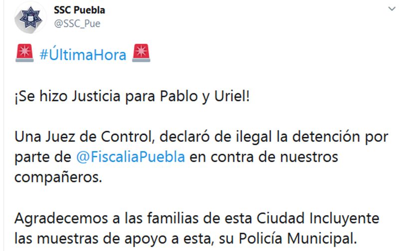 Incuso, la Secretaría de Seguridad Ciudadana (SSC) del municipio de Puebla hizo un llamado a la Fiscalía de Puebla y al Tribunal Superior de Justicia para actuar en el caso conforme a derecho sin permitir “presiones externas”.