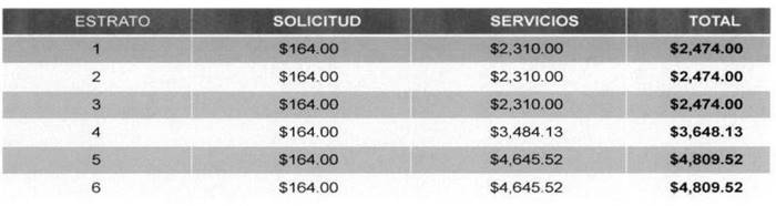 - Pago único desde $2,474 a $4,809 según estrato y servicios.