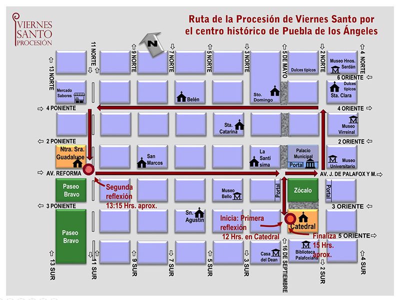 En conferencia de prensa, Carlos Martínez Cruz, presidente del Comité Organizador, detalló que, comenzará a la 12:00 horas con una primera reflexión, y posteriormente continuará por distintas calles de la ciudad, donde participarán siete imágenes: la Virgen de la Soledad; la Virgen de los Dolores, el Señor de las Maravillas; Jesús Nazareno; Señor de las Tres Caídas, Jesús de la Misericordia y el Santo Niño Doctor de Tepeaca.