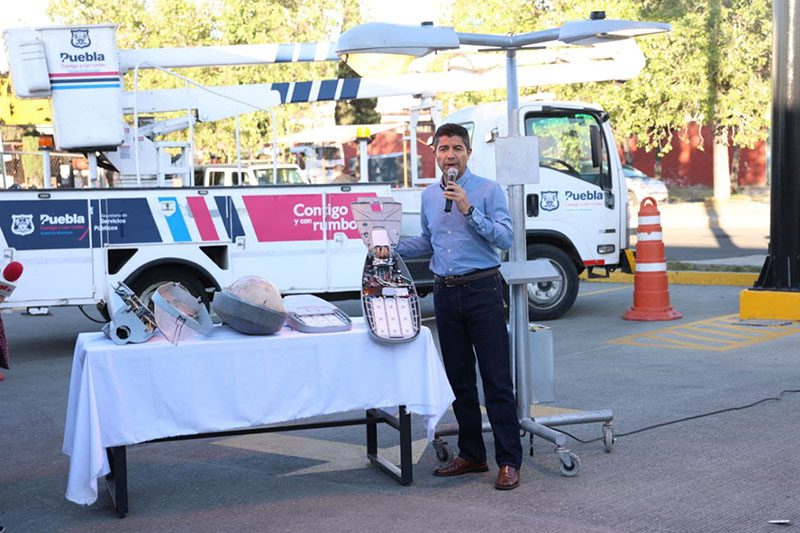 Fue desde esta importante arteria vial, al norte de la capital, que Eduardo Rivera Pérez, presidente municipal de Puebla, supervisó la entrega de 151 luminarias que fueron sustituidas para contar con hasta cuatro veces más luz en la zona, ahorrar energía eléctrica y cuidar el medio ambiente, además de fortalecer la seguridad para que las y los vecinos del lugar transiten tranquilos, detalló el alcalde.
